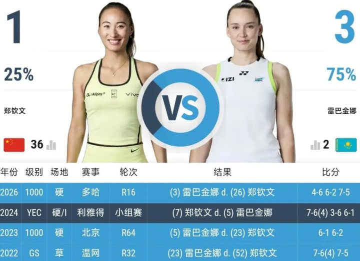 意义的是,赔率险些把她的胜算按在地上摩擦。4.00对1.25,商场给出的信号再明确不外:这球,郑钦文赢不了。 说真话,这个判断不冤。望望对面站着谁——莱巴金娜,现役天下第2,刚在澳网举起女单冠军奖杯。冰冷的数据摆在何处:1胜3负,郑钦文独一赢下的那次,也曾2024年年终总决赛,敌手正处于管事活命凄凉的低谷期。两个月前的多哈,郑钦文先下一盘,硬生生被逆转。这剧情,熟习得让东说念主深爱。 但我思聊的不是这些数字。真恰好得玩味的是:为什么偏巧是马德里? 2021年欧洲杯淘汰赛赛程郑钦文在这片形式上,胜率低得离谱——2胜4负。算作对比,她在法网的红土上反而打得申明鹊起。同是红土,远离在哪?马德里高原海拔约650米,球速更快、弹跳更不规矩,对发球和预判的条款天差地远。而莱巴金娜恰正是那种——你给她少量节律上的舛错,她能还你一记凯旋得分的东说念主。